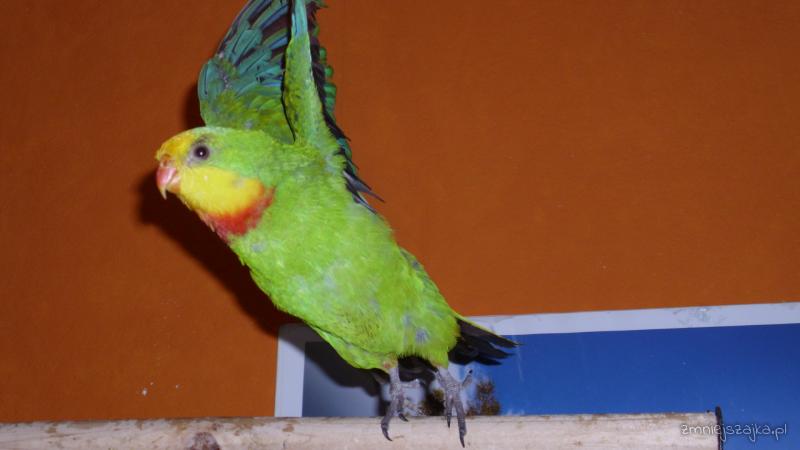 O pióra w ogonie się nie martw. Podczas pierzenia wypadną mu te młodzieńcze, a urosną nowe. Jednak od spodu będą już całkowicie czarne, bez różowych obwódek. Zgubi też młodzieńcze pomarańczowe ,,majteczki " na podudziach.
