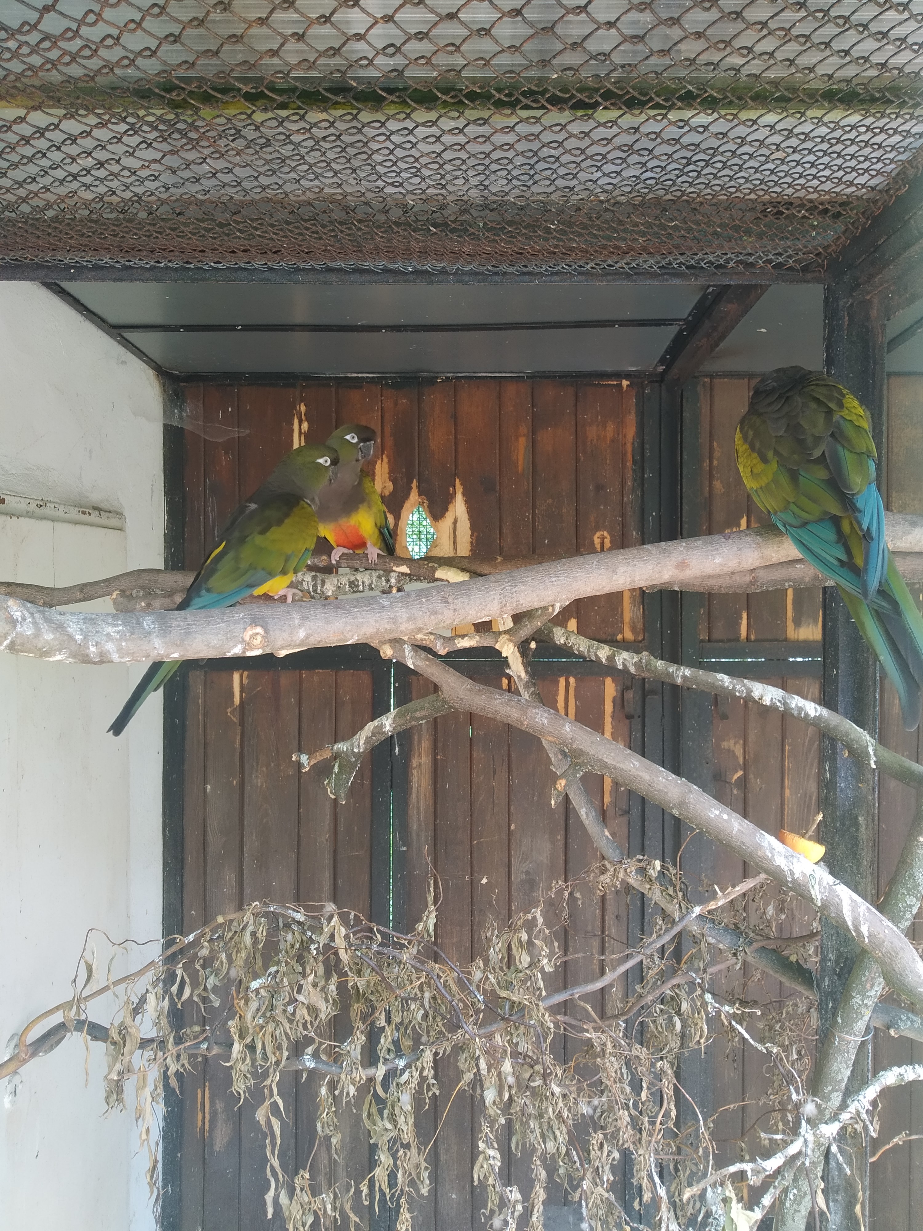 W budynku "Madagaskar" pamiętam, że były dwa gatunki papug: nierozłączki siwogłowe i papuzice duże. To pierwsze nie wiem gdzie się podziało, drugie ma teraz lepsze warunki bo ma dostęp do woliery zewnętrznej:
