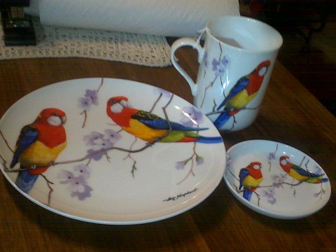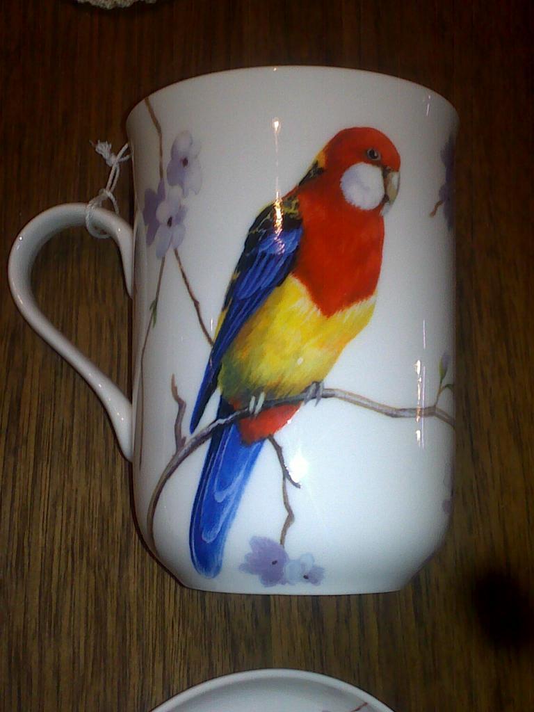 Wczoraj otrzymałam piękny prezent świąteczny z Australii. Delikatna porcelanka w motywy papuzie.