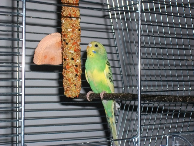papuzka nie czuła sie zbyt pewnie i nie broniła swojej klatki.