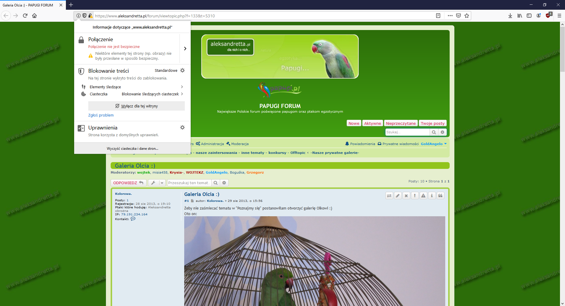 Słuchajcie, pisałam prywatną wiadomość do GoldAngelo i do tej pory jej nie odebrał, niepodoba mi się ta sytuacja, że mamy brak ochrony danych na tym forum i do tego nikt z administratorów się nie wypowiada w tej sprawie. Sprawdzałam na innej przeglądarce czyli Google Chrome i jest tak samo, na pasku pisze, że jest to niebezpieczna strona.