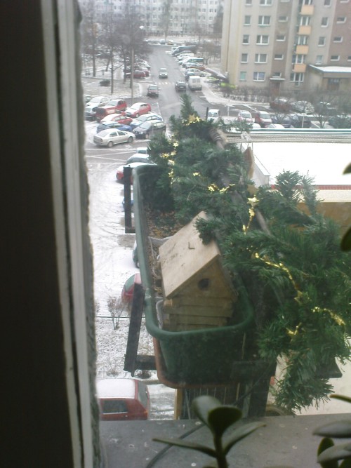 Ja za oknem mam malutki karmniczek dla sikor i wróbli. One trochę pokarmu wyrzucają na ziemię, a tam z kolei zywią się gołębie.