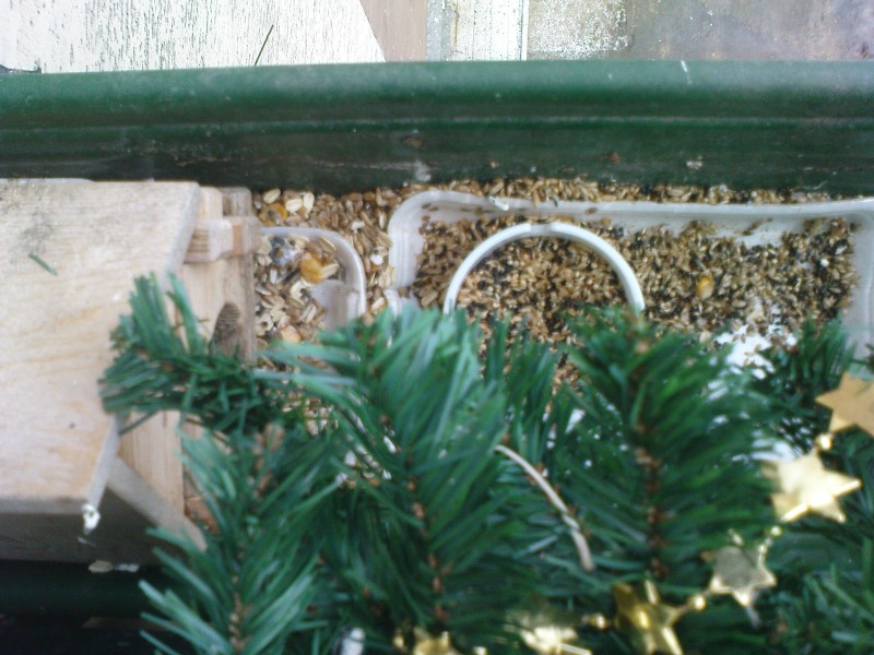 Starajcie się nie sypać pokarmu na ziemię bo maluchy się do niego nie dostaną, zaraz bedzie zjedzony przez wrony i sroki.