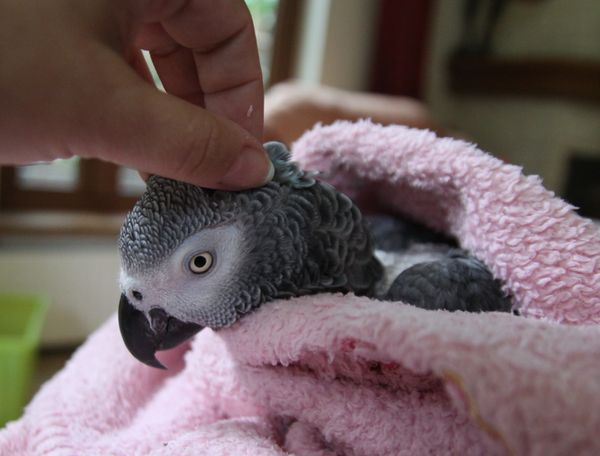 Rozpoczęłam preceder usuwania jej przyciętych do samej skóry lotek i sterówek,tak aby szybko odrosły.Jednocześnie dostaje suplementy witaminy i minerały na nadmierny wysiłek który ją czeka przy tak intensywnym wzroście piór. Pobiorę jej również na bibułę krople krwi do badania na wirusy ze względu na to ze z piór nie ma z czegi wysłać próbki :(