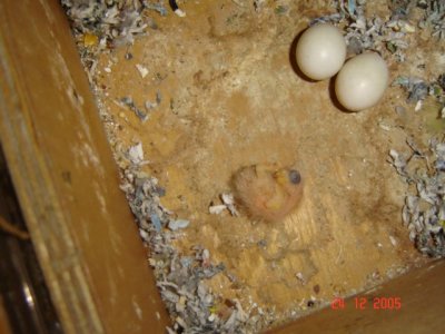 Problem polega na tym, że rok temu moje zielone nierozłączki złożyły jajka. Po "przepisowych" 23 dniach wykluły się dwa małe puchate pisklaki pokryte żółtym puchem. Niestety maluchy przetrawały tylko dwa dni. Nie wiem co było przyczyną ich śmierci ale przypuszczam, że był to pierwszy lęg więć rodzice nie wiedzieli jak się nimi opiekować. Zaraz po tych nieudanych lęgach samica zniosłą dwa jaj i niestey padła przy znoszeniu 3. Po jakimś czasie otrzymałem nową zieloną samczkę od znajomych, która utworzyła z moim samczykiem nową parkę. Parka w ciągu ubiegłego roku miała już trzy przystępowała do lęgów niestey bez sukcesów. Z żadnych jajek nic się nie wykluło. Myślałem, że jajka były niezapłodnione wieć przy sprzątaniu budki rozbiłem ich skorupki (może to brzmieć brutalnie) ale w każdym był mały całkoicie ukształtowany, martwy pisklak szarosinego koloru. Takie lęgi powtórzyły się już trzeci raz.