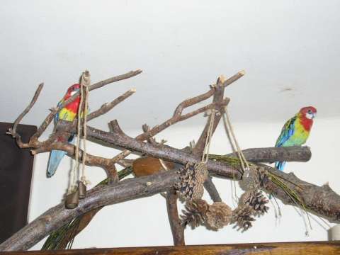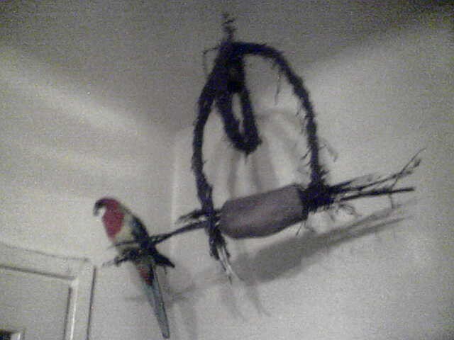 Ja zalozylam swojej aleksie sliczna bujawke, ktora zrobilam sama z kawalka dzrewa winogronowego i sznurkow. Jak narazie omija ja z daleka i chyba sie jej boi. Czy to potrwa dlugo? Moze ona nie jest zbyt rozgarbieta i nie wie, ze to dla jej przyjemnosc. Moze sie tam bujac, skubac drewno, ale nic z tych rzeczy! Ani jej sie sni to dotknac!