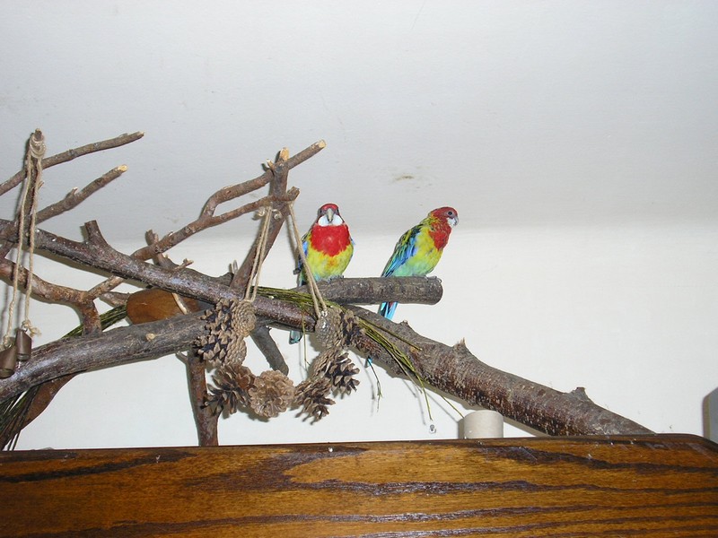 Mam pare rozelli białolicych. Samiec-Kuba nie ma jednej łapki( w przeszłości był zle zaoobrączkowany,wtedy jeszcze do mnie nie nalezał tylko do mojego wujka) wygląda to jakby nie mial "stopy". Asia jest sprawną młodą papużką i zabawki dla niej to raj. Wieszałam jej huśtawke ,rózne linki z drewienkami, ale Kuba nie mógł skorzystac ani z huśtawki a ni nie mógł usiąśc na zabawce i jej gryżc. I teraz mam pytanie, co powiesić w klatce żeby oboje byli szczęśliwi? Czy zabawki wieszać nad samymi żerdziami żeby Kubuś miał do nich łatwy dostęp? Tylko że wtedy ma utrudnione poruszanie sie po klatce.