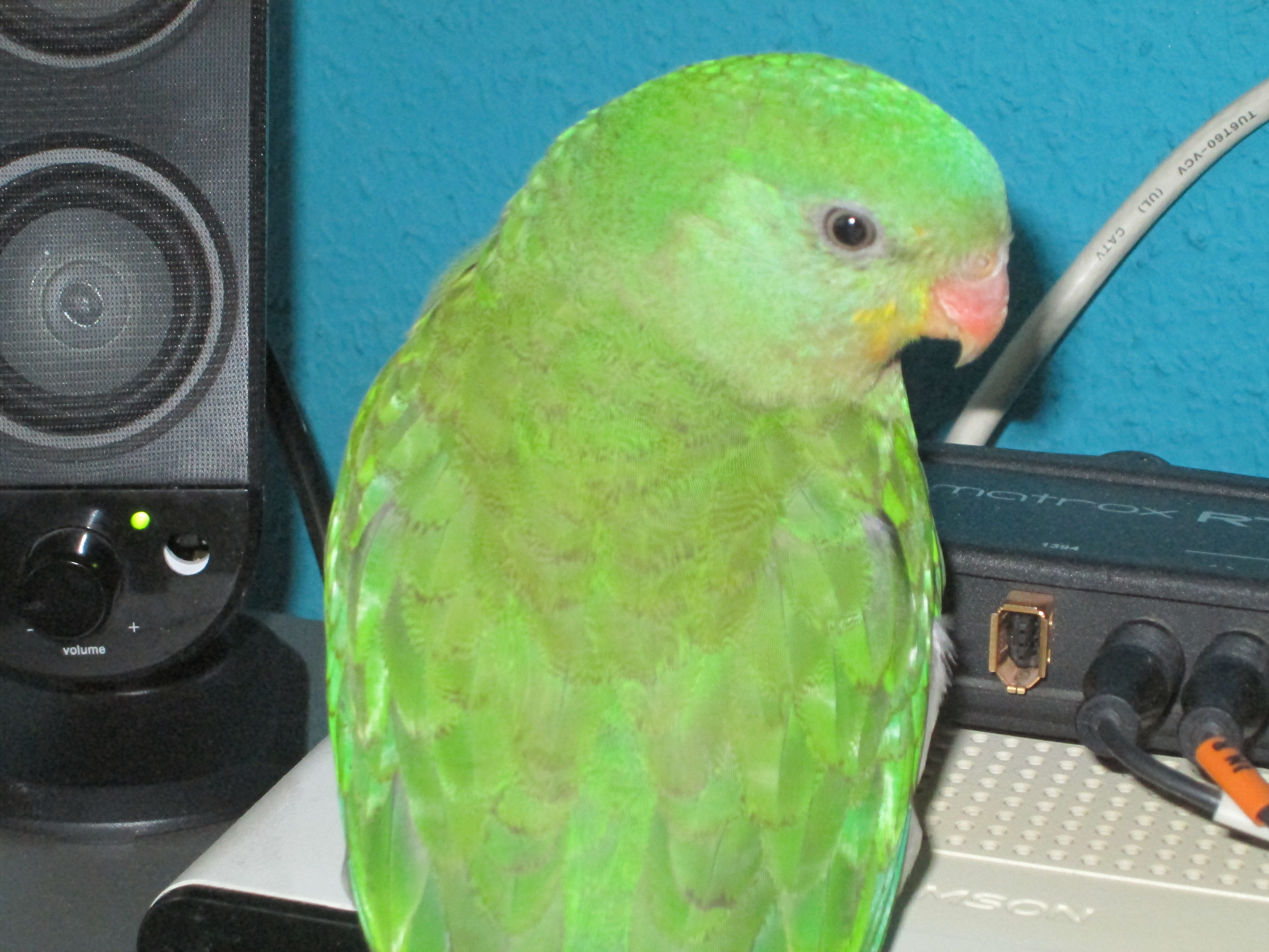 Mam go od grudnia a już się przyzwyczaił do czterech domowników, do mnie najbardziej <biggrin> Przylatuje do mnie jak zagwizdam.