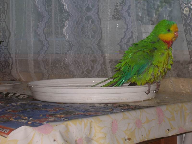 Nie zrażaj się brakiem kąpieli. Cierpliwie wymieniaj wodę co dnia, a się doczekasz pluskania ;)