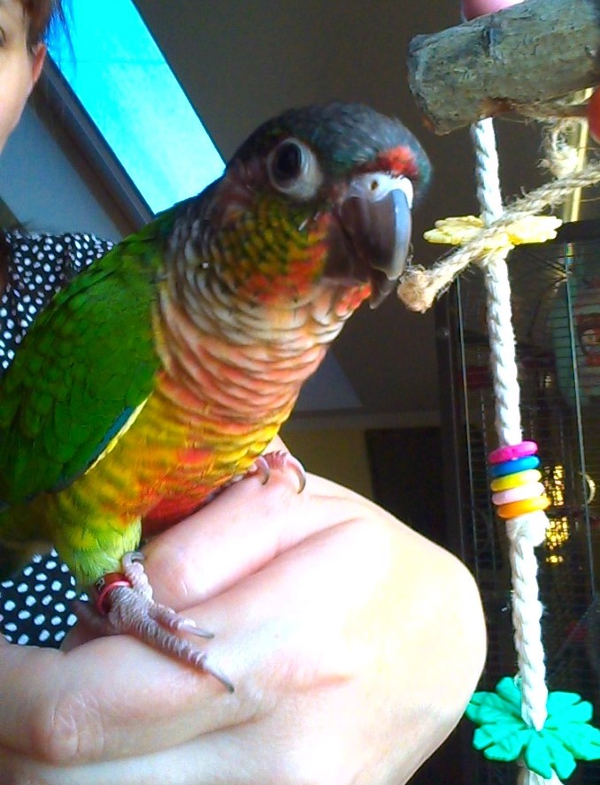 Ha! Mojego męża w czwartek rano wywiało do Warszawy <haha> , nie było go 2 dni i 2 noce... <hura> Ruffi oczywiście dostał możliwość pobuszować ze mną na dole domu :D (hihihi) Oj jak mu się podobało fruwanie po salonie , siadanie na kuchennych szafkach, zrobił mi dziury w firankach w kuchni pazurami :) Było szaleństwo :) To było fajne...ja coś tam robiłam, a on zerkał na mnie siedząc na blacie kuchennym.... pił wodę prosto z kranu ...ale mąż by się wkurzył jakby wiedział... <nie_powiem> <nie_powiem> <nie_powiem>