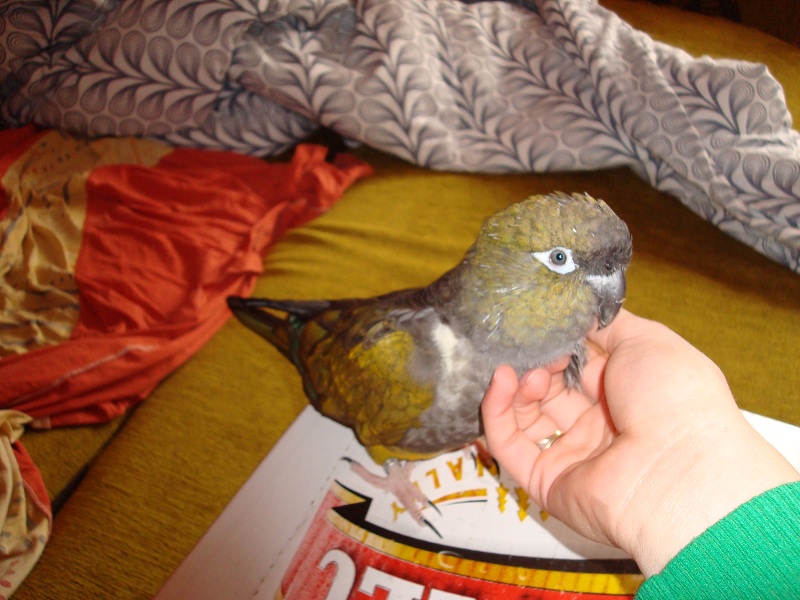 Pepi niestety nie mówi nie wiem czym to jest spowodowane raz tylko powiedziała do mnie chodź może to jej wiek bo ma 1,5 roczku,za to uczy sie zasłyszanych dźwięków puszcza buziaka to opanowała od razu , cmoka, miałczy, robi wr,,, mr.... gwiżdże .Pepi wyraźnie stara sie mówić bardzo często słychać że uczy się i guga jak dziecko... Pepi pozwoli ze sobą zrobić wszystko oprócz wywrócenia na plecy bo tego nie cierpi .Patagonki to bardzo towarzyskie papugi (przynajmniej pepi) bardzo lubi chodzić po podłodze i podąża za mną wszędzie ,po za tym to świetny stróż nikt nie zauważony nie przejdzie bez krzyków i jak ktoś jest obcy prób udziobania.Jest niezwykle inteligentna ,broni mnie zaciekle przed każdym człowiekiem ,czasem nawet bywa że ma zły humor i nie pogadasz z nią za nic. Z głośnością to prawda są cholernie głośne i jak jest ktoś nerwowy to patagonki nie polecam bo jak sie wydrze to bębenki cierpią ... Pepi dla mnie jest łagodna i czuła sądzę że uważa mnie za swojego partnera bo często zwraca na mnie..ale czego sie nie robi dla miłości.Co do tolerowania innych ptaków to przyjaźni sie z tobim aleksą z którą dzieli pokój i urządza loty. Pepi to też niszczyciel i elektryk i dlatego nie jest na stałe na wolności tylko pod moim okiem.A za hodowle dziękuję wciąż nad nia pracuje i mam z tego coraz więcej radości