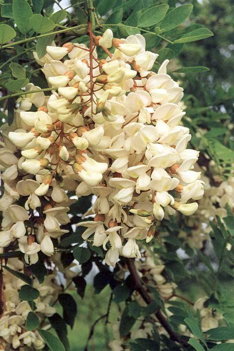 Robinia akacjowa (grochodrzew biały, robinia biała, grochodrzew akacjowaty) (Robinia pseudoacacia L.) – drzewo dorastające do 25 m wysokości.