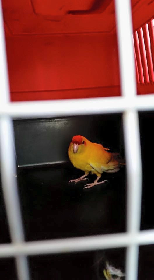 Trochę zastanawia mnie jej zachowanie. Dziś jest już znacznie spokojniejsza, ale za każdym razem jak podchodzę do klatki to zaczyna mnie "śledzić" i otwiera dzioba do ataku.