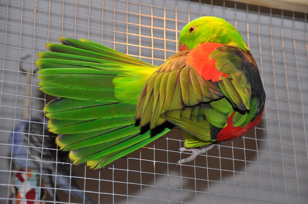 w Bydgoszczy w sklepie zoologicznym wystawiona jest na sprzedaż para papug czerwonoskrzydłych ( 3000 zł). Siedzą sobie w małej klatce za szybą i czekają na lepszy dom...