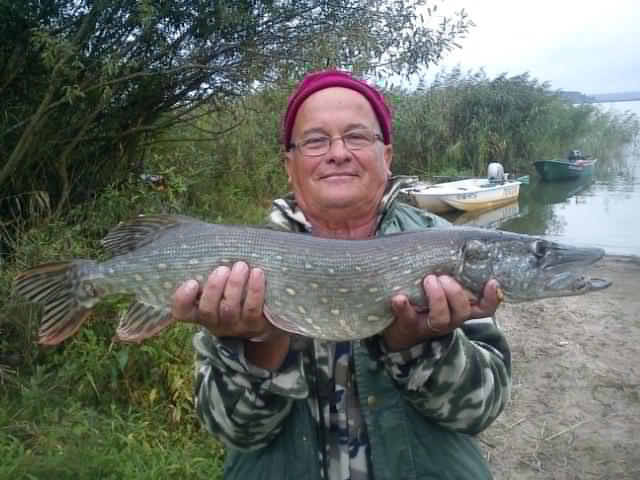 Po długich oczekiwaniach na ''wielką'' rybę Wojtkowi nareszcie udało się coś złapać. Szczupak ma 75cm długości.