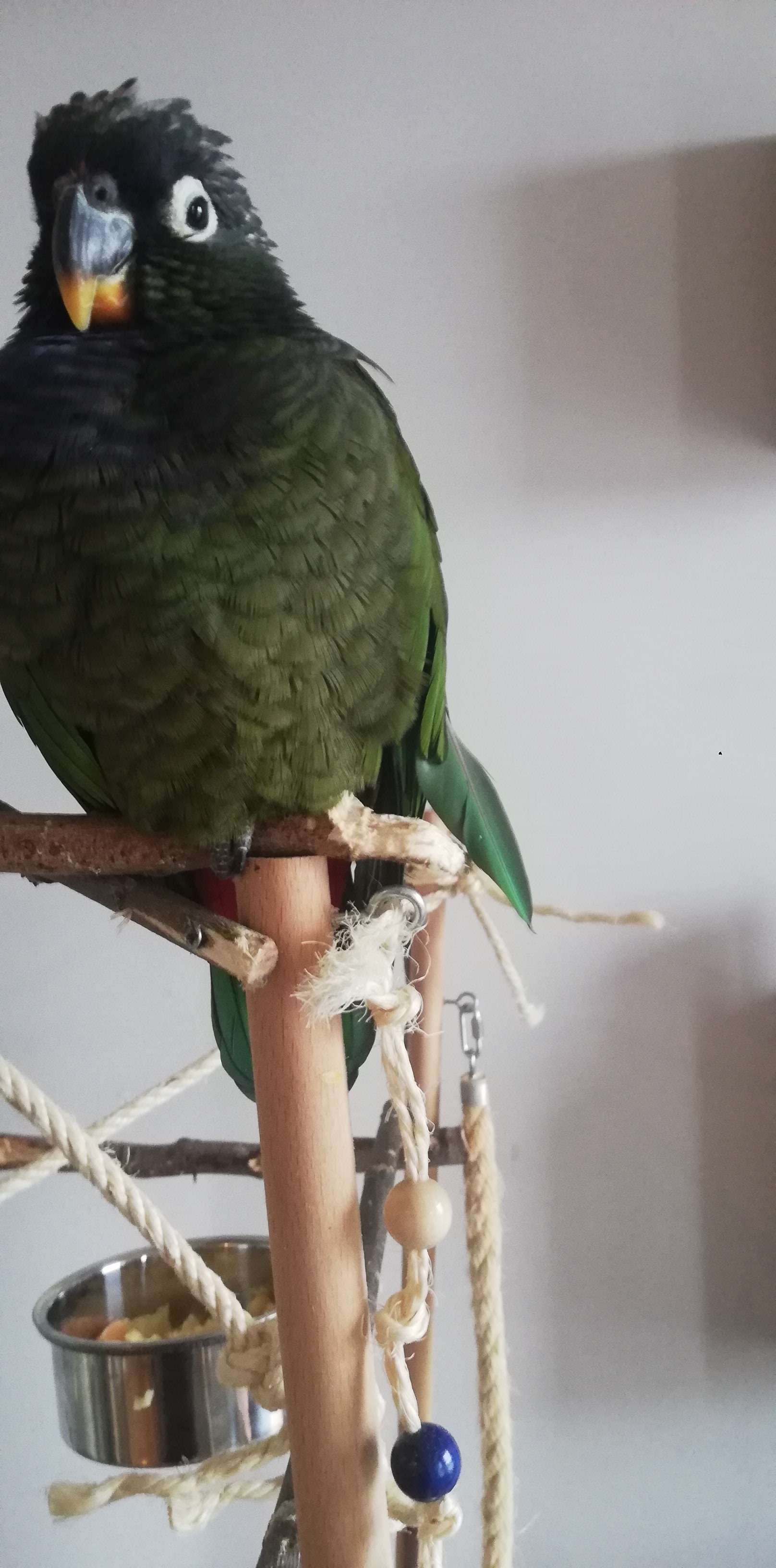 Dziś po kąpieli zauważyłem, że jedna lotka w skrzydle mojej papugi jest krzywa