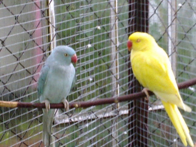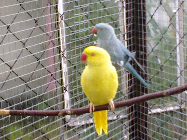A ptaszki kupiłem od różnych hodowców z Polski aby uniknąć pokrewienstwa, żółtego który ma prawdopodobnie około 2 lat (ponoć samica) mam ją/go od roku - jednakże przestraszyłem się ostatnio gdy zaczęła tanczyć jak widziała swoje odbicie w metalowym pojemniku - natomiast niebieskiego ptaszka zakupiłem około 3 miesięcy temu młody z początku 2012 (hodowca twierdzil ze to samiec niby go stary samiec strasznie gonił...)