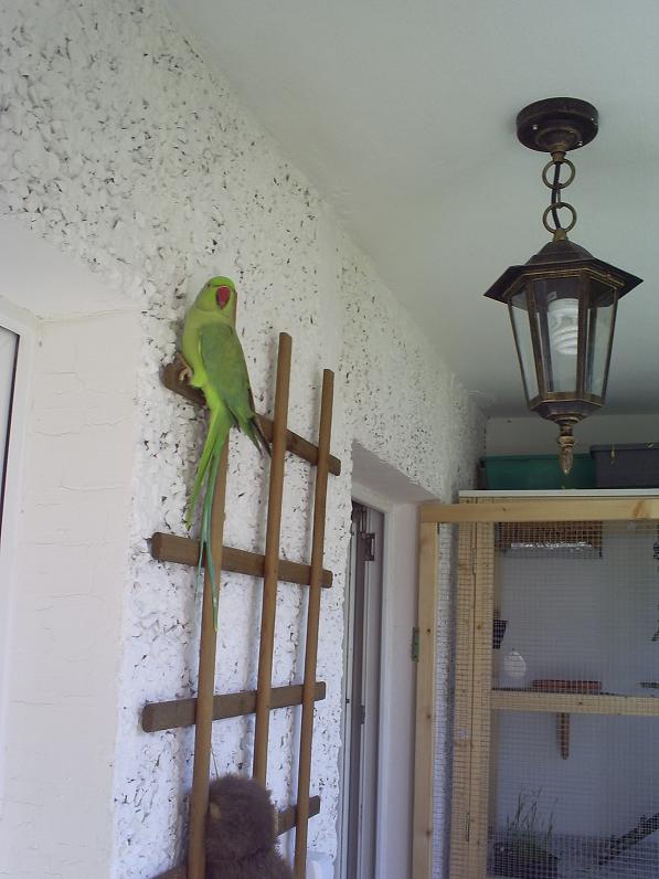 bo by je łapać i dawać do małych klatek nie chciałam nawet mysleć by ich nie stresować.W klatce też by nie mogły siedzieć bo by mąż miał ograniczony dostęp od strony klatki.Tak żle i tak nie dobrze ale i tak chyba na wiosne tą budkę wyjme z klatki i powiesze może na tej ścianie?Ale chyba bardziej dla dekoracji