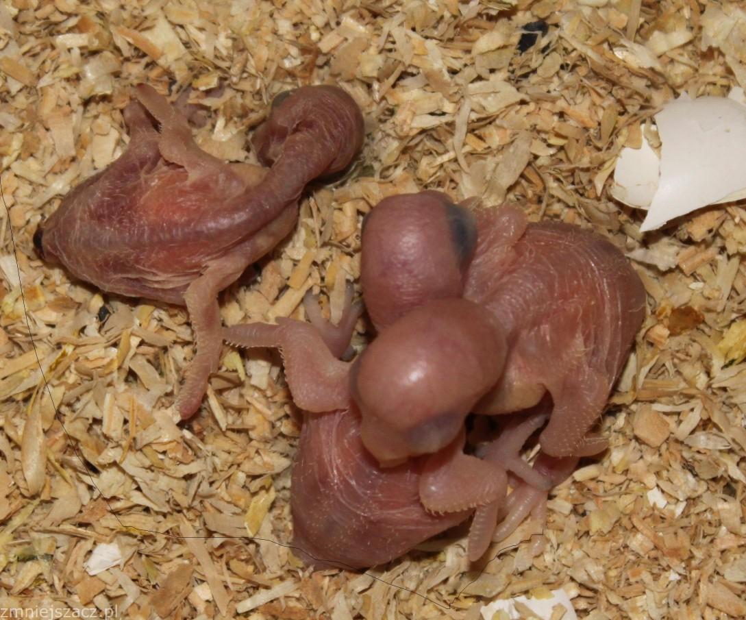 Podłącze się do tematu .. Dzisiaj zabrałam jaja moim aleksom wielkim samica 08 , chłopaczek 08 para złożona od 2011 roku zimy pierwsze lęgi. W sylwestra zobaczyłam pierwsze jajo Tobi kolejne po 2 dniach a ostatnie po 4.Jaja nie były przeswietlane bo samica nie pozwalała się zbliżyć i miała bude w klatce co ograniczało mozliwość ucieczki przed wściekłym ojcem .Samice pieknie siedziała żadko schodziła bardzo żadko ją przez miesiac widziałam , samiec czesto siedział z nią i bardzo jej doglądał.Dzisiaj postanowiłam że w końcu wyciagne jaja bo piszą że do 30 dni wyciadują czas ten zaokragliłam ostro .Oczywiście jaja prześwietliłam jedno było puste , jedno dziobem przekłute z zawiązkiem pisklaka , a trzecie z pisklakiem ktory zamarł najwyraźniej. Młody wyglądał jakby był dużo młodszy pilnowałam jaj nie możliwe jest by tobi jedno zbiła a następnie doniosła .Pierwsze podejrzenie to wilgotnosc a drugie to moje pytanie czy matka poprzez nad opiekuncze przewracanie jaj mogla male utopic? . Co myslicie? Rodzice to ptaki bez problemowo jedzace wszystko jajka, kielki, warzywa,owoce,zielonki kompletnie wszystko dostawaly calci lux do wody.