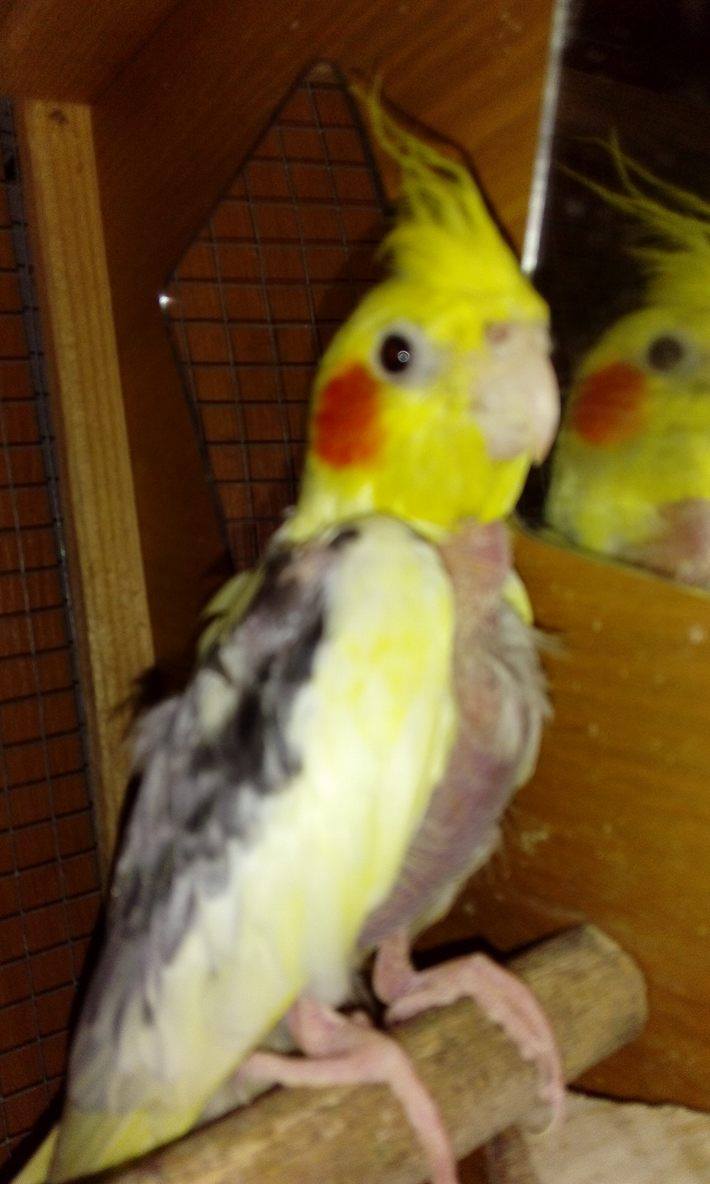 albo sie skubie - ma nawykowe skubanie, dzikie ptaki go nie wydziobały bo w takm wypadku braki w upierzeniu by były na plecach i głowie. Prawdopodobnie ptak się skubał i z tego powodu poprzedni właściciel go wypuścił, bo nikt nie chciał wyskubanego ptaka