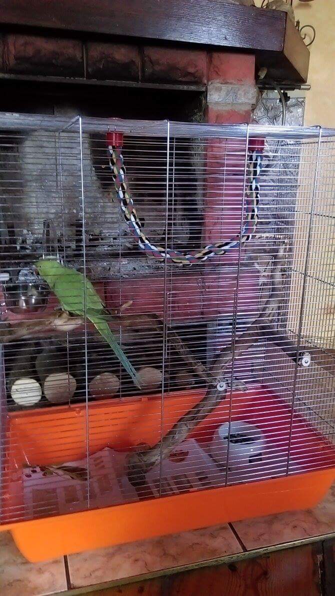 Wydaje mi się że umieszczenie klatki w takim miejscu (obok pieca) i jeszcze na podłodze jest bardzo złym wyborem.
