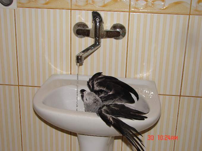 )zeby nie latał po domu ,miał tez podciete lotki u poprzedniego hodowcy...to wszystko sprawiło,ze jest bardzo nie ufny....mam nadzieje ,ze jakos ,kiedyś sie przełamie.Jego kąpiel ogranicza sie na siadaniu na brzegu kabiny prysznica wtedy kiedy my sie kąpiemy.Nie będe go zmuszac,moze sam kiedys sie odważy.....