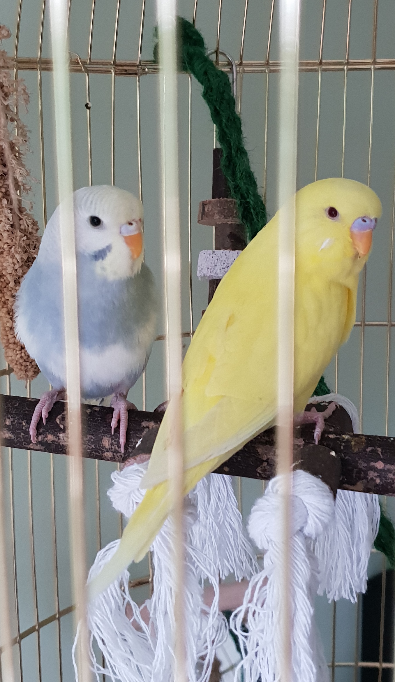 Samiczka jest oliwkowym szekiem dominującym jednofaktorowym, a samiec to paraniebieski(niebieski z żółtą maską) spangle jednofaktorowy