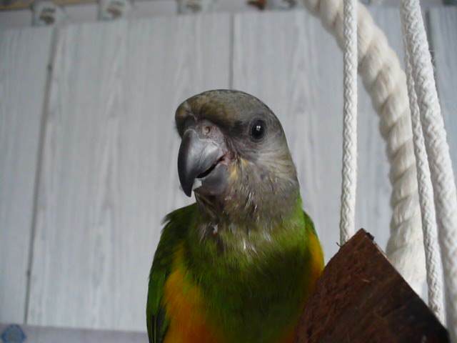 młoda Wojtkowa samiczka czuje się coraz pewniej na lotach po całym mieszkaniu :-D ,jest nadzieja ,że kiedyś będą parą,zainteresowanie samca nową koleżanką jest różne,musimy uważać nawet ,gdy mała siada na klatce senegalca ,by ten przez pręty dziobem nie skaleczył jej łapek,ale i ona już teraz robi się zadziora i sprytnie odlatuje unikając dziobnięcia,po takim lekkim zamieszaniu potrafią przez chwilę siedzieć cichutko i dotykać się dziobkami ,coś tam po swojemu świergocząc,fajnie to wygląda bo Piotrek wtedy nastawia łepek by mała go miziała, :-D ,cały czas bacznie wszystko obserwuje, by w odpowiednim momencie szybko zareagować w razie agresji i tak pomalutku z dnia na dzień przyzwyczajają się do siebie,aż w końcu doczekam się ,że zamieszkają razem w jednej dużej klatce :-D