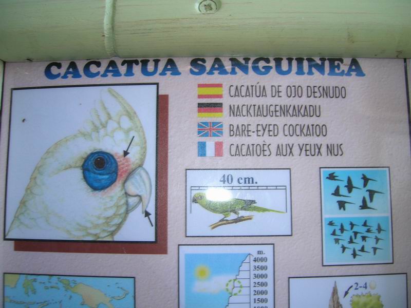 Wydaje mi się, ża na zdjęciach powyżej nie ma kakadu małej ale kakdu niebieskooka (Cacatua ophthalmica). Kakadu mała (c. ducorpsii) jest sporo mniejsza od c.alba a na fotce oba ptaki sa prawie tej samej wielkości. Poza tym c.ducorpsii nie ma tak intensywnie niebieskiej otoczki wokół oka. I dziobki też w innych kolorach.