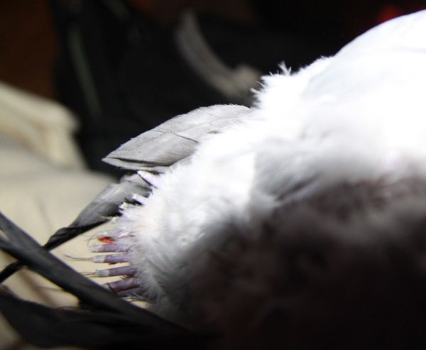 Roxy pięknie obrosła. Ma juz prawie wszystkie lotki i sterówki. Niestety zdarza jej się jeszcze skubnąć conie co ale ze "starego" łysola niewiele już zostało. Jedna nieobecność pół dnia w domu domowników i połowa sterówek wycięta równiutko. Obecnie po śmierci Józi czas spędza w wolierze z Marcelem. Coco wyraźnie jej nie znosi i nie dopuszczał jej do jedzenia. Z łagodnej samiczki po okresie zadomowienia stała się niezłą rozrabiarą. Niestety dotyczy to również dziobania.Na szczęście nie robi tego z wyszarpywaniem mięsa :)