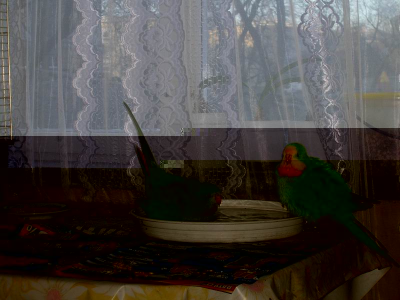 Z racji ośmioletniego doświadczenia z parką tych papug, zauważyłam zmianę ich zachowania (wrzasków na modłę szczekania psa) . Od późniejszej wiosny do końca października, od rana ptaki są ciche, większość dnia przesypiają z krótkimi przerwami na jedzenie, Baaaardzo rzadko się kąpią, a jeśli już , to tylko w pochmurne, deszczowe dni.