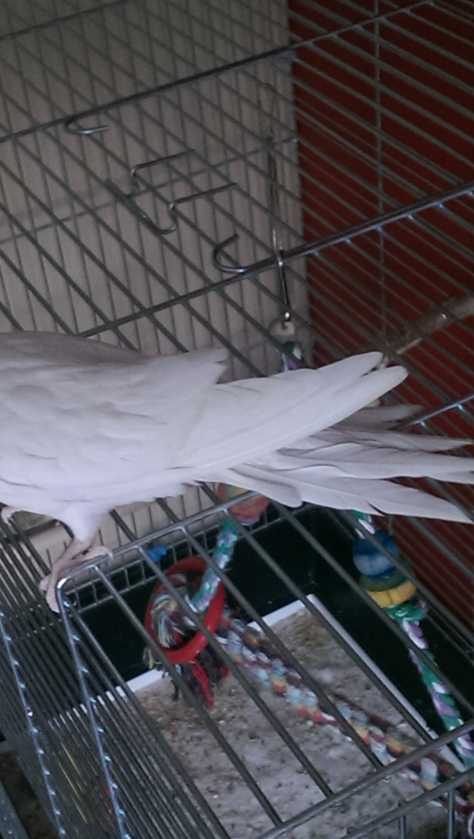 to przez pierwszy tydzień nie latała w ogóle i była bardzo markotna (mało jadła, chodziła tylko po ziemi i była smutna) teraz doszła do siebie ale nie ma ogona w ogóle i na całym ciele też ma niezłe braki w upierzeniu ale wszystko ładnie z czasem odrasta