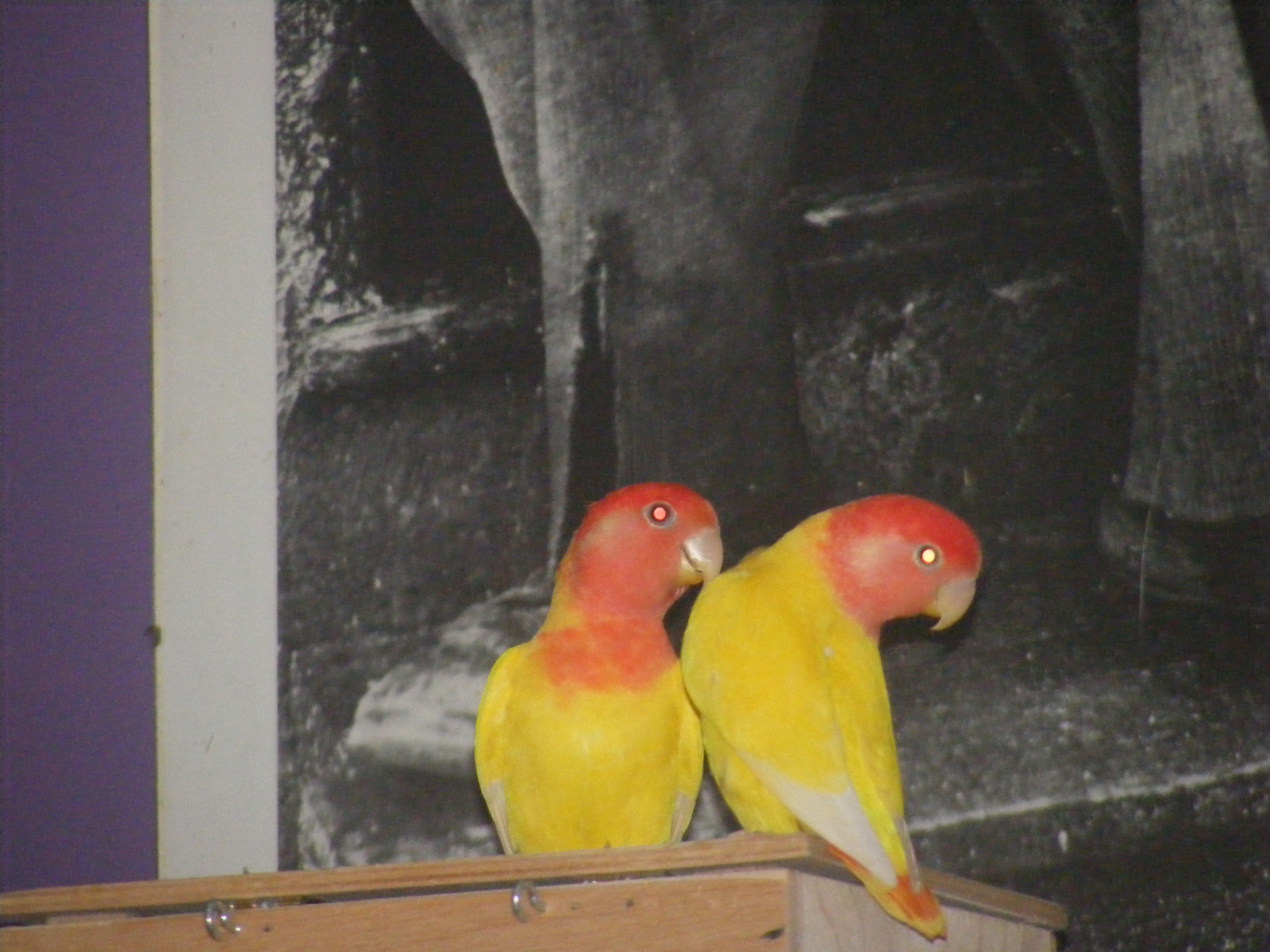 Jeśli masz możliwość , postaw klatkę z papugami w innym miejscu - tutaj klatka jest za nisko, ptaki bardzo źle się czują, gdy znajdują się poniżej głowy człowieka, nie mogą być też za wysoko....najlepiej gdyby były na wysokości człowieka - mówiąc najprościej - ta komoda obok lepiej się do tego nadaje :D Przydałoby się im też więcej naturalnych żerdek, no i jakieś zabawki :) huśtawka