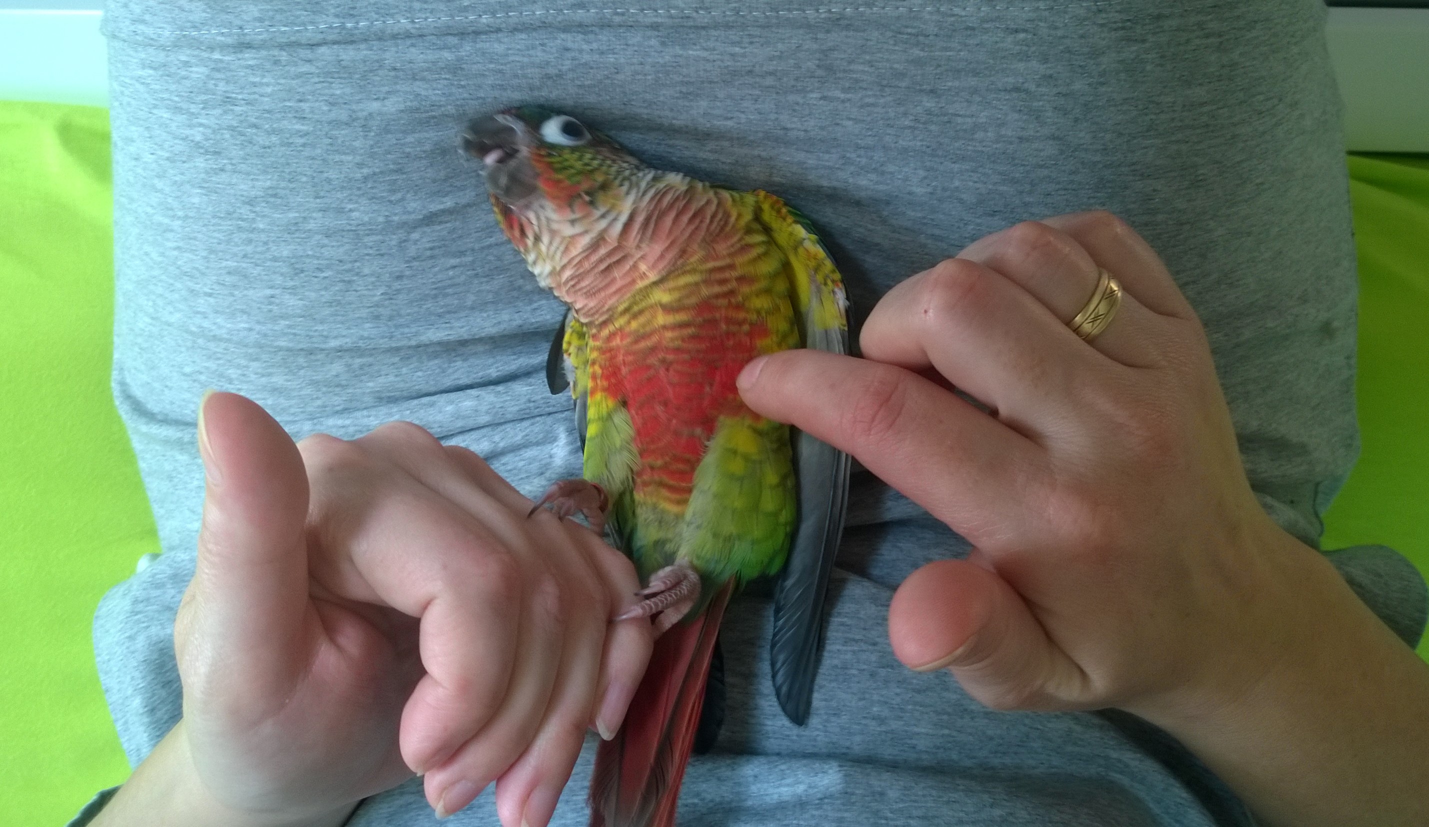 Bercicki - pytałeś mnie ostatnio na FB jak u Ruffiego z kąpaniem - Ruffi sam pokazuje mi kiedy chce się kąpać. Mamy taką tradycję, że zmieniamy mu wodę do picia razem - on idzie ze mną do łazienki. Kiedy chce się kąpać, podczas mycia miseczki siada mi na ramieniu i potrząsa skrzydłami - znak że ma ochotę na kąpiel - więc mu ją umożliwiam na różne sposoby... w misce, kuwecie, umywalce lub wannie... różnie.