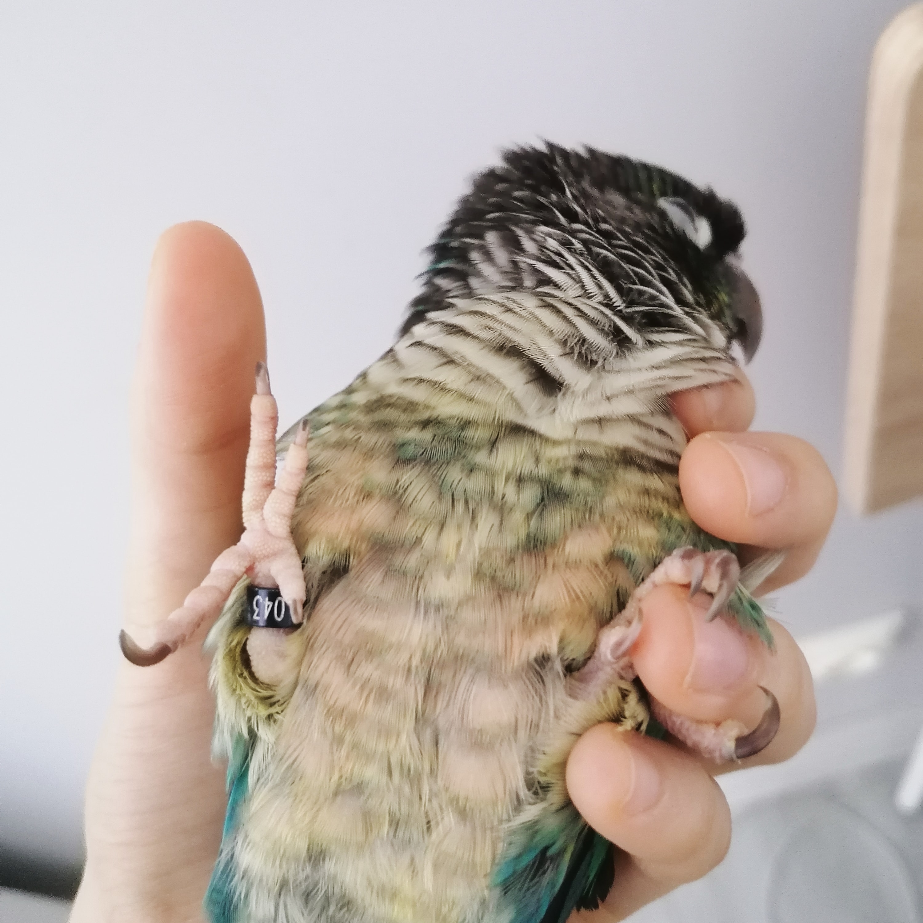 Ptaki które hoduję: Ruffi -ręcznie karmiona rudosterka zielonolica, mutacja yellow sided