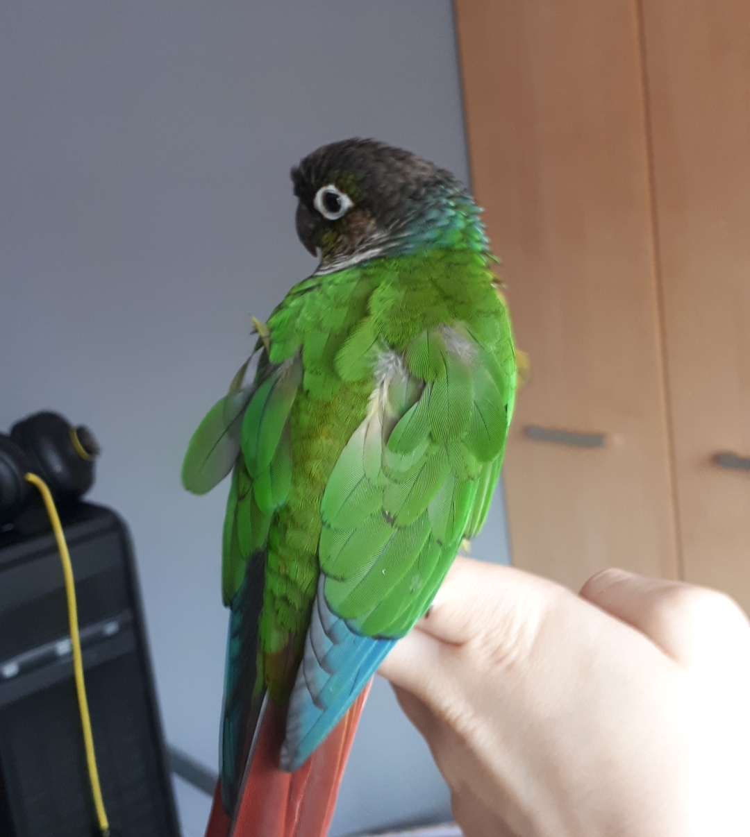 Hejka! Jak w tytule, mam problem z rudosterką :(( mianowicie od samego początku nie miała kilku lotek w prawym skrzydle, była młoda, pomyślałam- muszę poczekać, pewnie odrosną. Przy okazji podczas wizyty u weta spytałam o to, wet powiedział, że odrosną. Tymczasem mija 7 miesięcy, a tych lotek jak nie było tak i nie ma :((( dodatkowo ma takie powykrzywiane pióra we wszystkie strony świata, wykąpała się- zero reakcji, załączam zdjęcie. Pójść z tym do weta? Przypomina wam to coś?