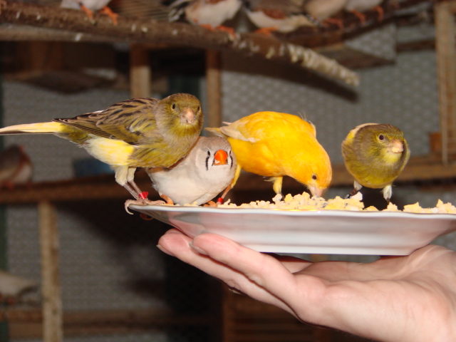 Ptaszki maja zróznicowaną karme bo dostaja mieszanke prosa,deli nature dla kanarków,mieszanki traw i innych nasion,owoce,warzywa.