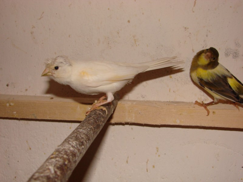 kanarki sie wykluły i mam 2 białe w tym jeden z czuprynką ciemną po tatusiu białym z koronka i mamusi zołto brązowej