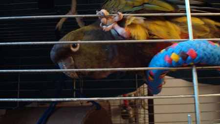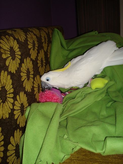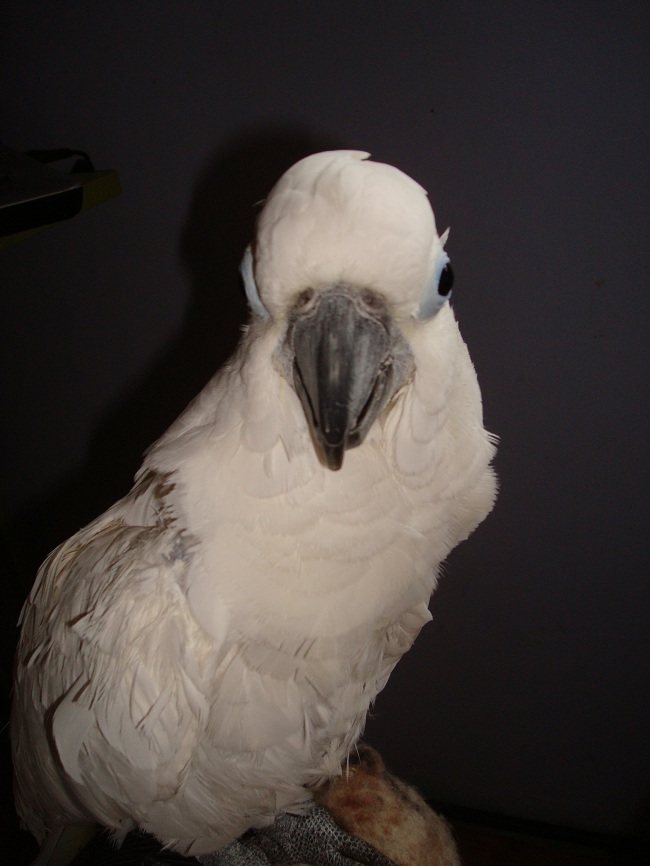 Z radością donosze że Klarcia mieszka ze mną już od roku . Dużo mnie nauczyla o sobie o tym co lubi a czego nie .Mamy doskonaly kontakt ufa mi w 100 % .Z łatwością nauczyłam ja piłowania paznokci pilniczkiem do tipsów moge klasc ja na plecach w razie koniecznosci sprawdzenia czegoś .Klara towarzyszy mi we wszystkim pod warunkiem ze nie ma w poblizu kogos kogo moglaby zaatakowac. Obecnie przed śnaidaniem waży 685 gram w lutym ważyła 661 gram wiec przybrała troszkę . Wyglada teraz bardzo dobrze ma piekna wybudowana pierś , pełne upierzenie lotek i zdolność lotu z ktorej korzysta tylko niekontrolowanie w chwilach wystraszenia czegos.Jej dieta zmienila sie je praktycznie wszystko bardzo chetnie je nabialy najchetniej z lyzeczki .Przestala sie skubac a to najwieksze osiagniecie ma pelne piekne upierzenie.Z okazji naszej rocznicy no i dalekiem drogi jaka przeszła by znaleźć dom w ktorym ludziom na niej zalezy kupiłam jej prezent w postaci spirali .Spirala bardzo sie spodobala klara tokowala i darła sie w niebogłosy kołyszajac sie na niej i wiszac glowa w dol z rozlozonymi skrzydlami jak nietoperz.Nie tylko klarce podoba sie spirala reszta ptaszyn tez chetnie z niej korzysta fajna sprawa:)