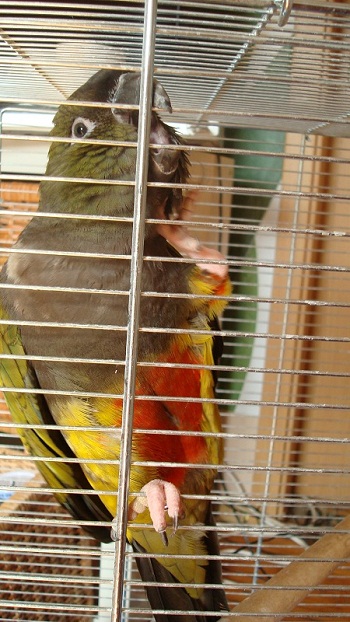 Stich ma sie dobrze jest nadal obrosniety upierzenie nie jest geste bo dlugo sie skubal ale wyglada jak papuzka a nie sępik:)zdjecie z przed przenosin do pomieszczenia :)