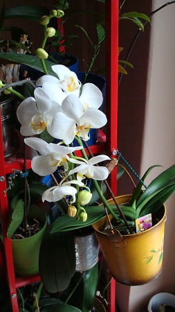 Storczyki maja swoj stojak i papugi sie nimi nie interesuja, jak były w ptasim koko raz wylądowała na nich i połamała je bo to jednak delikatna roślina . Storczyki sa też w moim pokoju gdzie jedyna papugą tutaj mieszkającą jest georgi ,a on znowu roslinami wcale się nie interesuje.