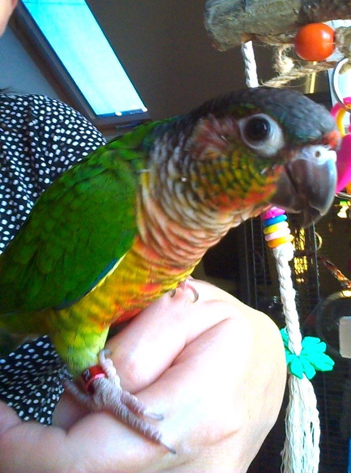 Ptaki które hoduję: Ruffi -ręcznie karmiona rudosterka zielonolica, mutacja yellow sided