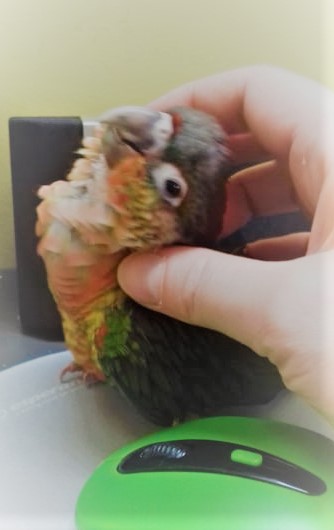 Zdecydowanie mniej dziobie i gryzie po szyi i uszach - teraz woli palce, a to już mniej boli więc spoko ;)