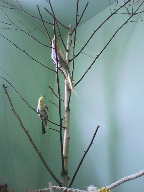 W wolierze pojawiła sę nowa atrakcja - cała brzózka ;)