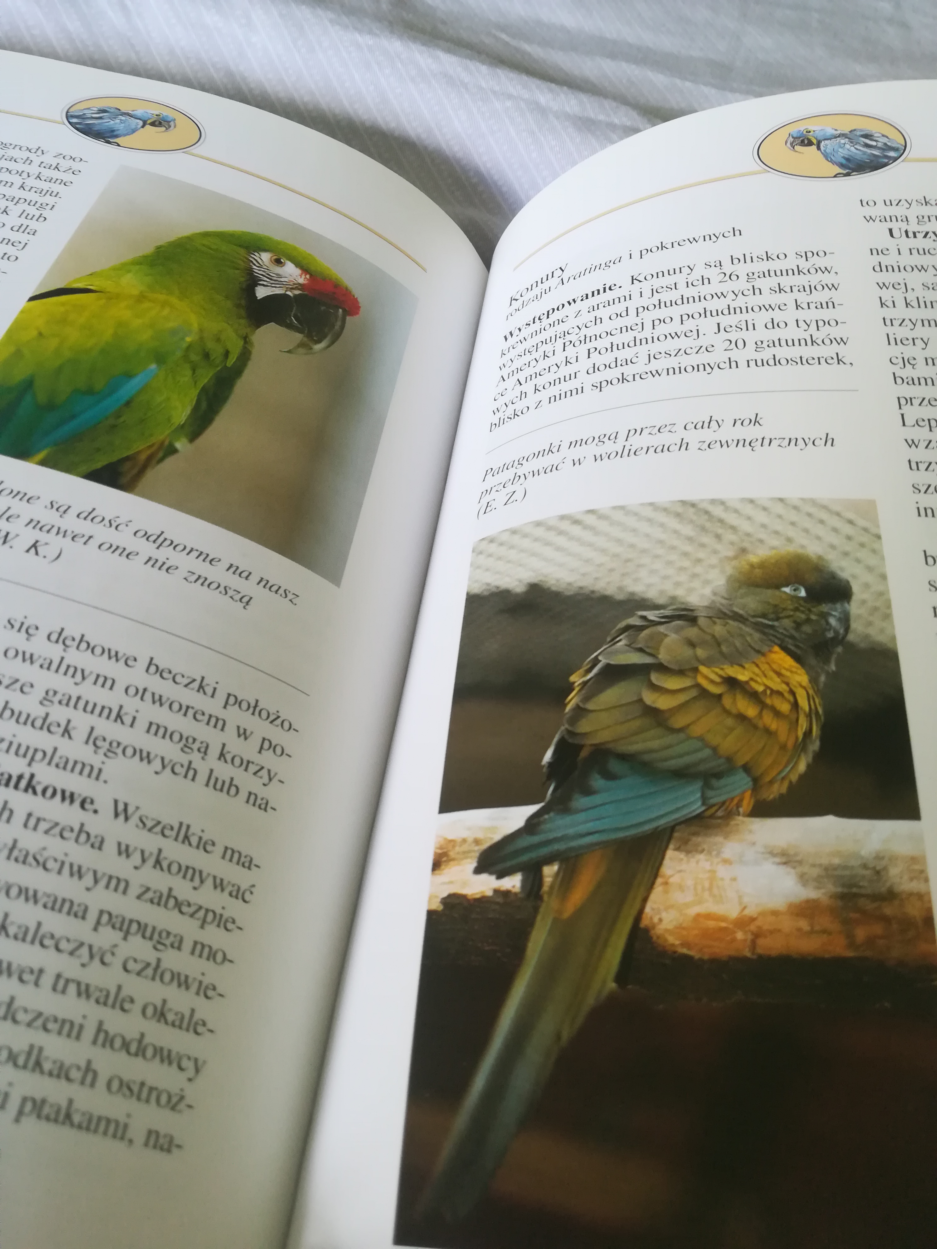 Papugi i papużki, książka we wnątrz.
