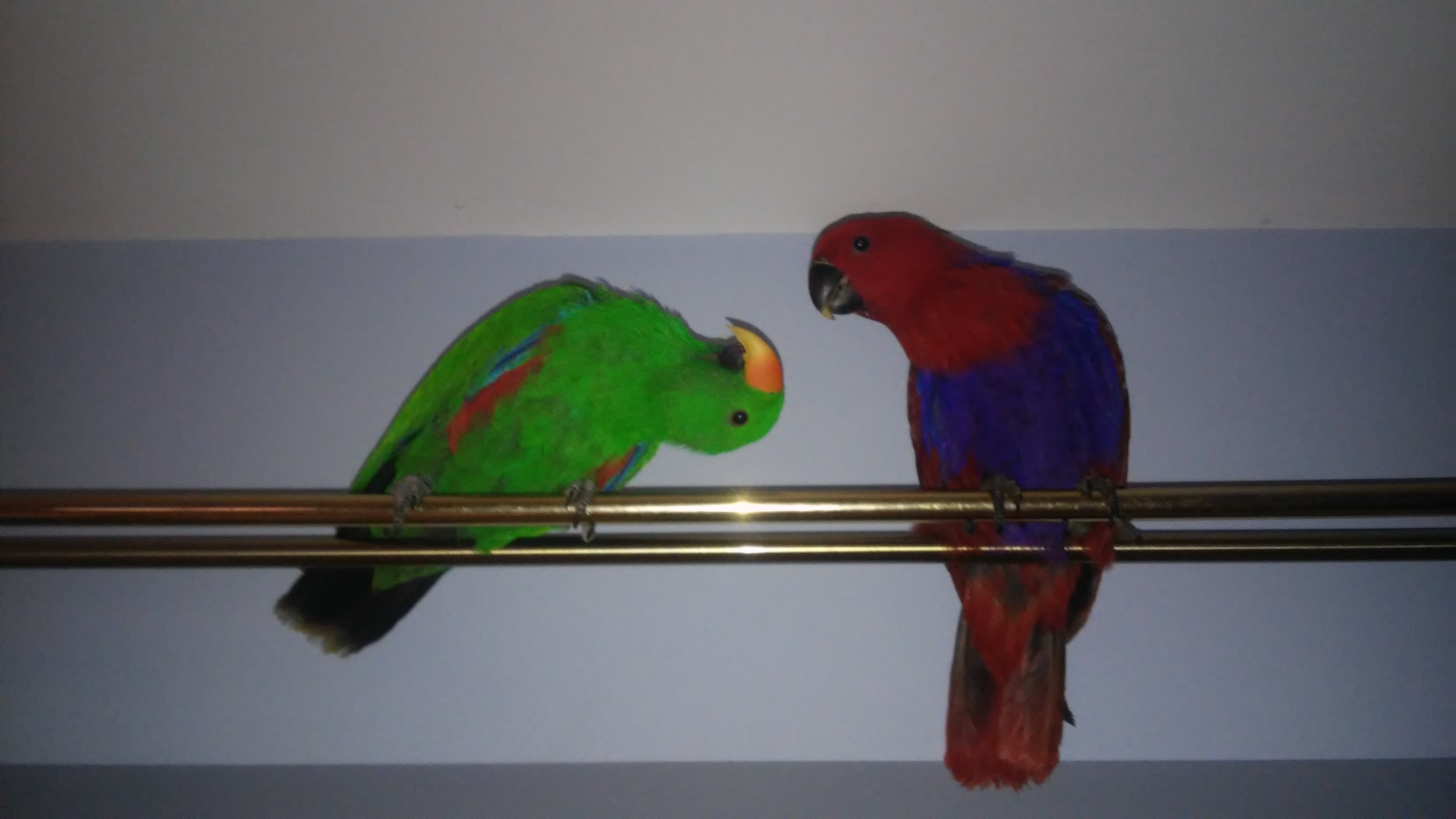 Początki były trochę trudne w kojarzeniu, gdyż Florek wprowadzał szermierkę na dzioby z Tosią. Jednak w dniu 20.01.2016r. Tosia uległa Florkowi i zacząl ją podkarmiać i przepychanki na dzioby odchodzą w niepamięć. Bardzo się cieszę, że ten czas ich adaptacji był taki krótki.