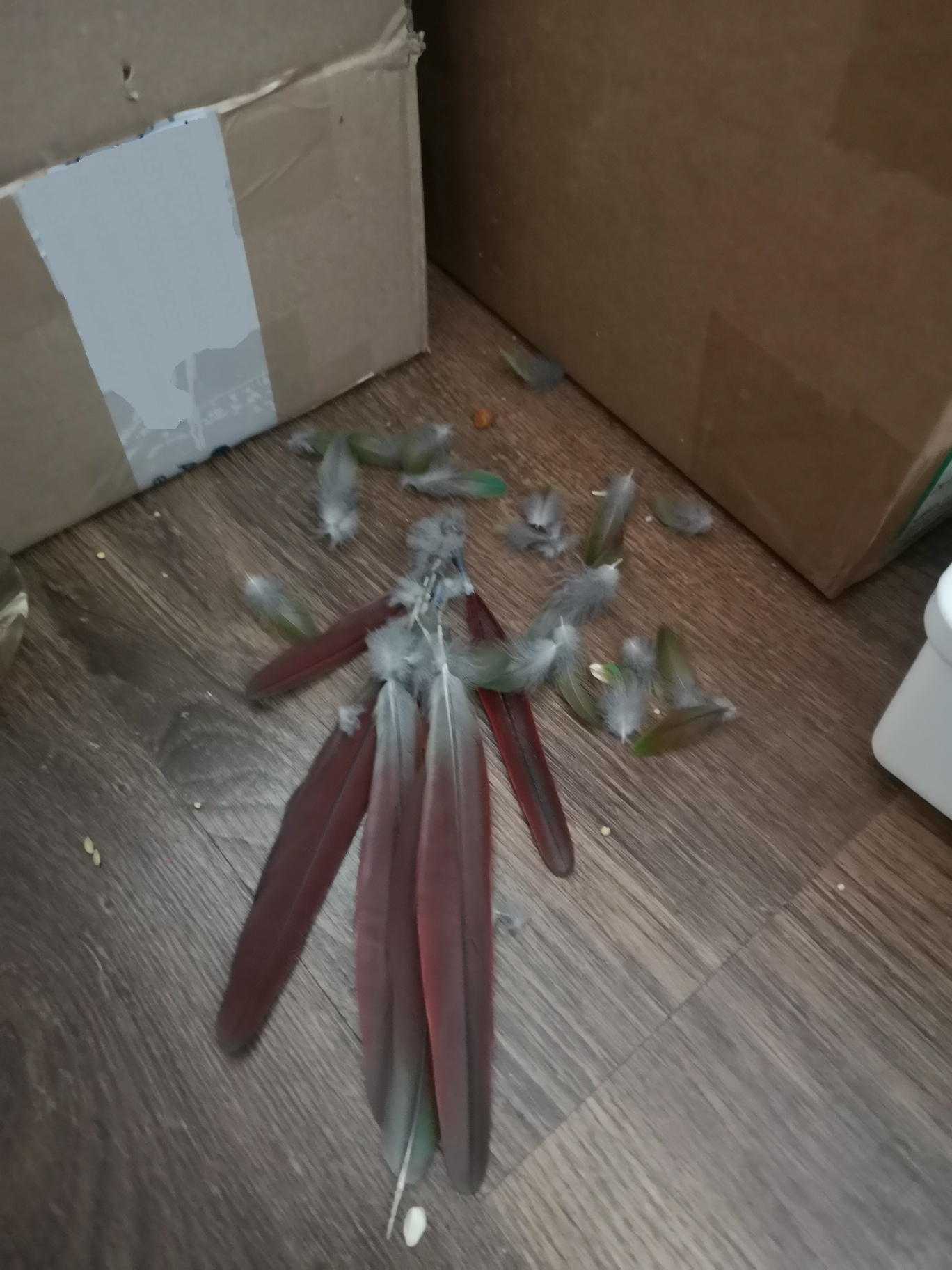 Na szczęście papug żyje. Wygląda jak kura albo raczej wróbelek, tyłek jak u pawiana ale żyje.