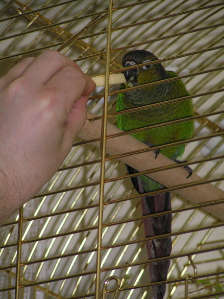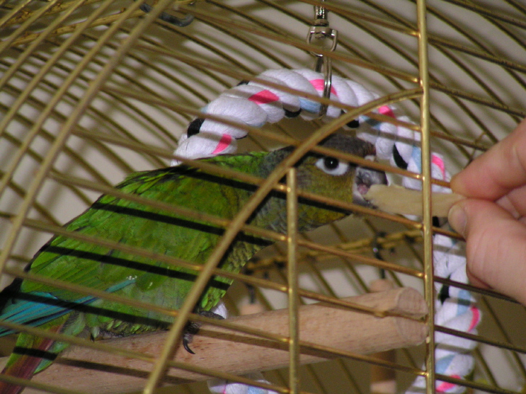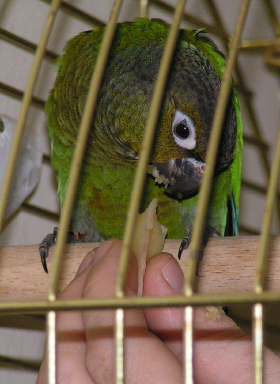 Nie dawaj jedzenia poza klatką, ewentualnie tylko smakołyka z ręki.