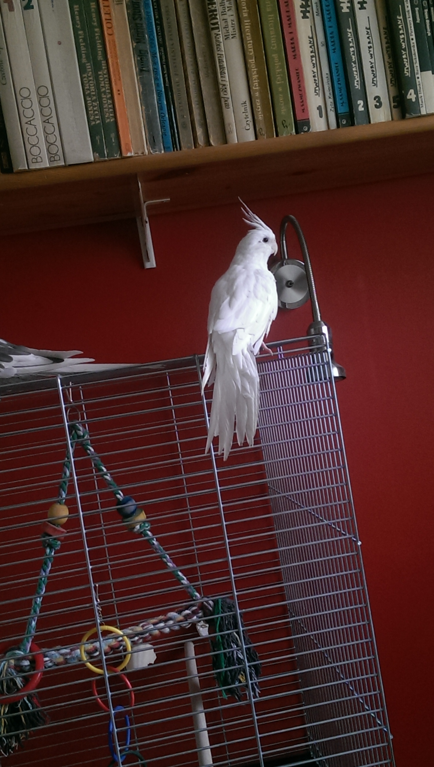 2. Czasami wpada w ataki złości, głośno skrzeczy i bije dziobkiem w pręty, czasami syczy, ale to nie jest skierowane w moją stronę, wtedy gdy jestem daleko od klatki. Wtedy podchodzę gwizdam jej ulubioną melodię i się uspokaja.