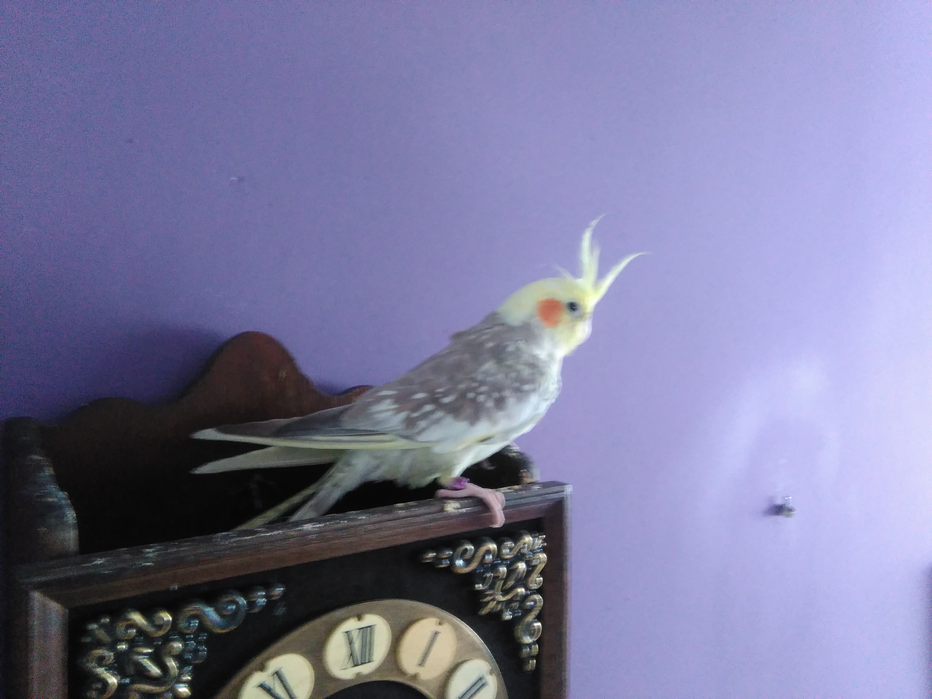 Teraz prośba 2: Tydzień temu zakupiłem kolejną nimfę i jest to na pewno mutacja tylko przeglądając w internecie zdjęcia różnych mutacji żadna nie wygląda jak moja. Oczywiście i tutaj wielka prośba o próbę rozpoznania płci. Dodam, że nie potrafię po zachowaniu tego określić. Obie nie "spiewają" tylko jakby piszczą nawołując się. Ta nimfa mutowana ma fioletową obrączkę z oznaczeniami "PL tw 028, 15"